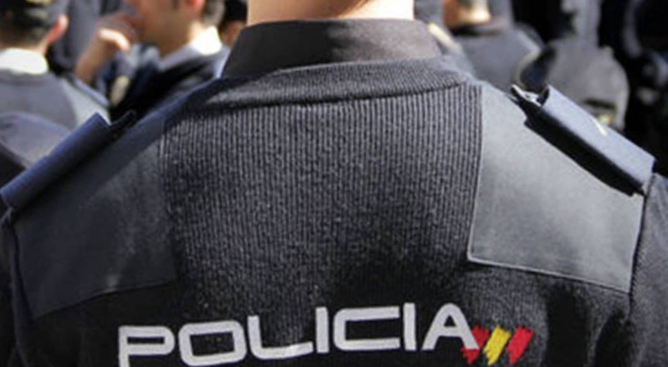 Bandera de España con embema Policia Nacional