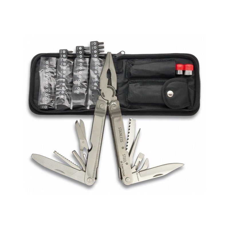 Tipo: Alicate multiusos Mango: Aluminio Tamaño Total: 17.5 cm Nº usos: 84 Presentación: Estuche nylon presentación