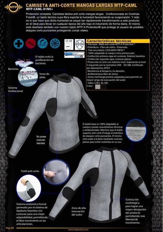 Diseñada como primera capa para llevar debajo de cualquier prenda, ya sea uniforme o paisano, con la máxima protección contra armas blancas gracias a la malla anti-corte MTP-X-Protection®, salvaguardando las partes vitales del cuerpo.