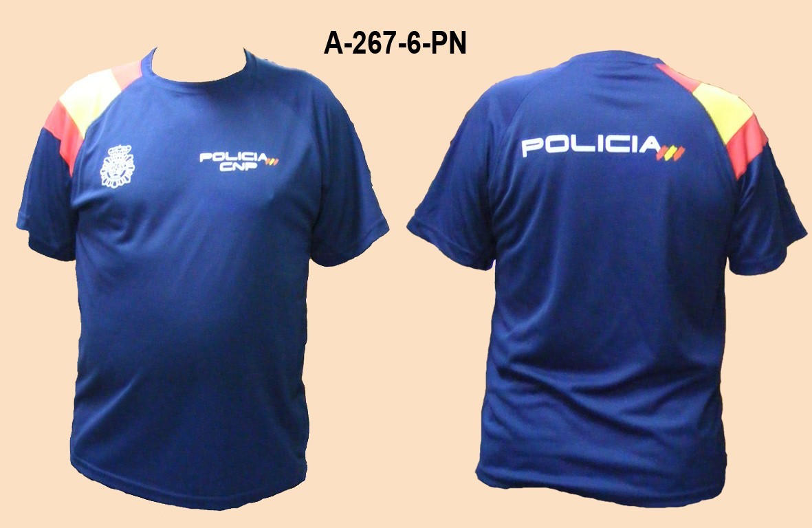 Camiseta Policia Nacional con Bandera España TRAZOS hombro