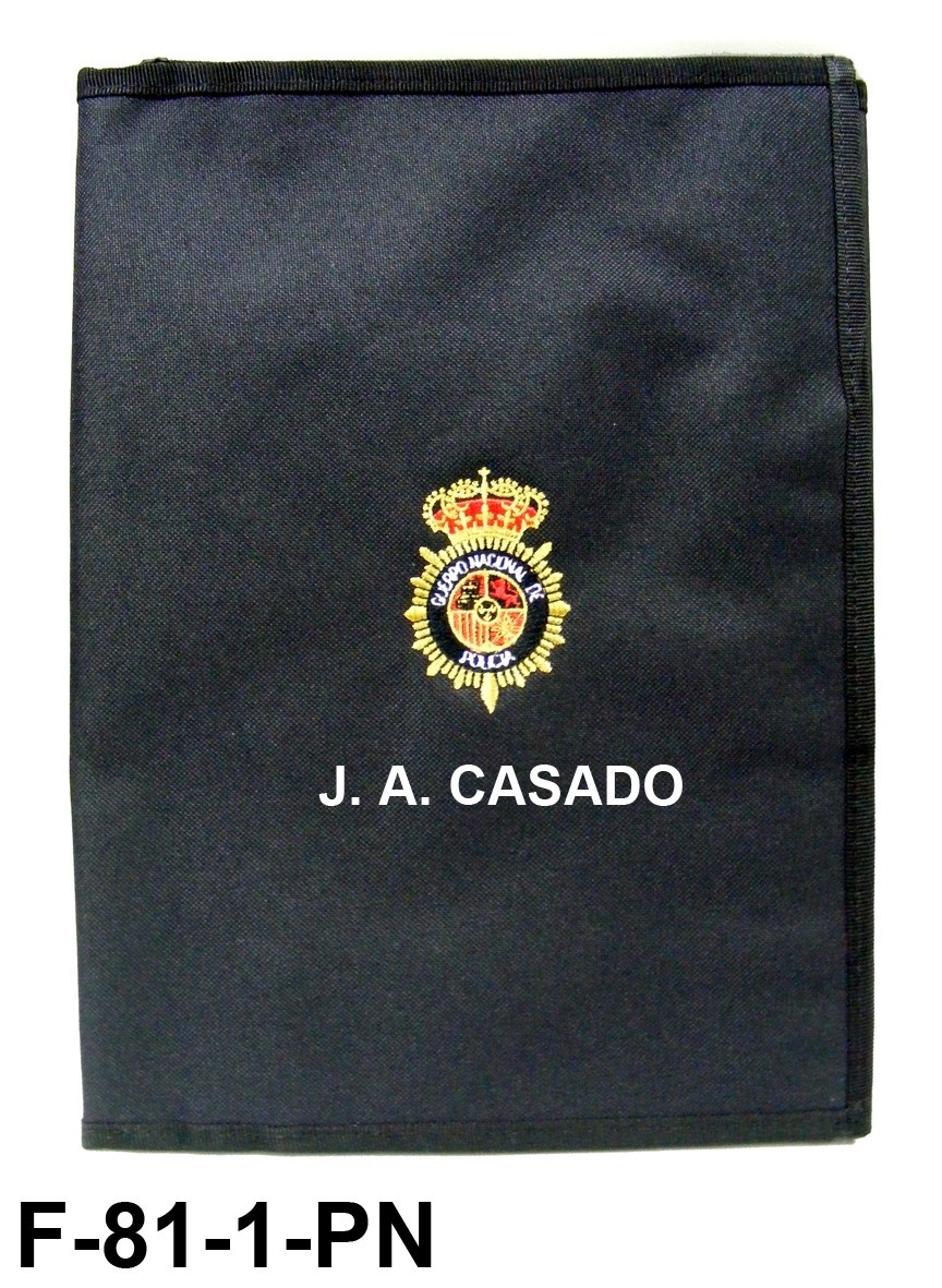 Carpeta nylon portaboletines bordada folio personalizada sin pinza emblema Cuerpo Policia