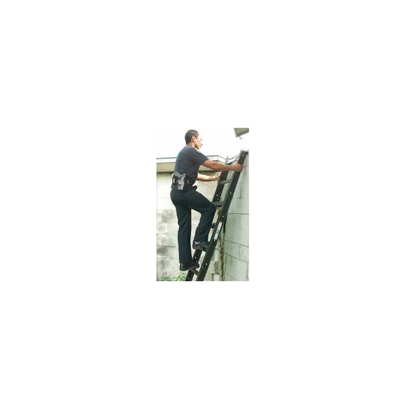 ►La escalera táctica tiene una longitud de 2,4 metros y está construida en aluminio. La anchura estándar de los peldaños es de 12 pulgadas. La escalera táctica plegable ofrece una anchura de 18 pulgadas, dotándola del mayor estabilidad que el resto.