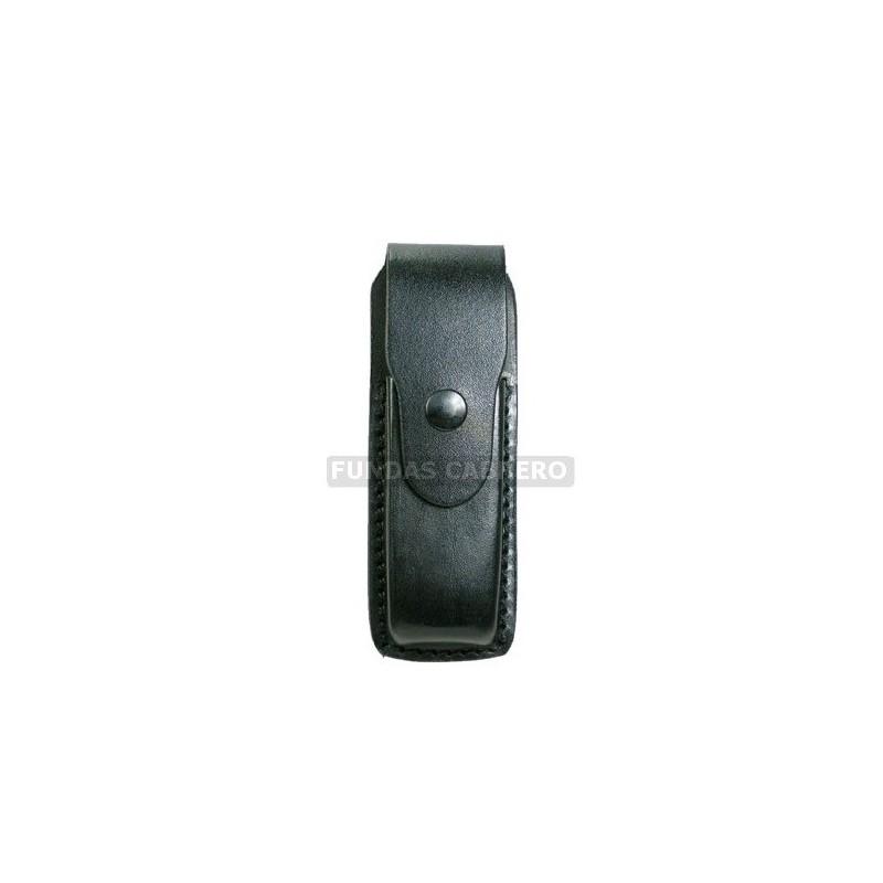 Fundas Portacargadores de cuero para arma corta con sistema de cierre de seguridad por corchete.