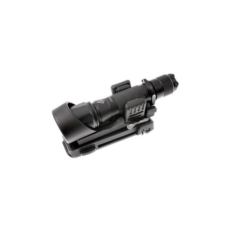 Funda válida para linternas de 34 mm de radio en su cabeza o zona luminosa principal, con sujeción táctica para extracción rápida .