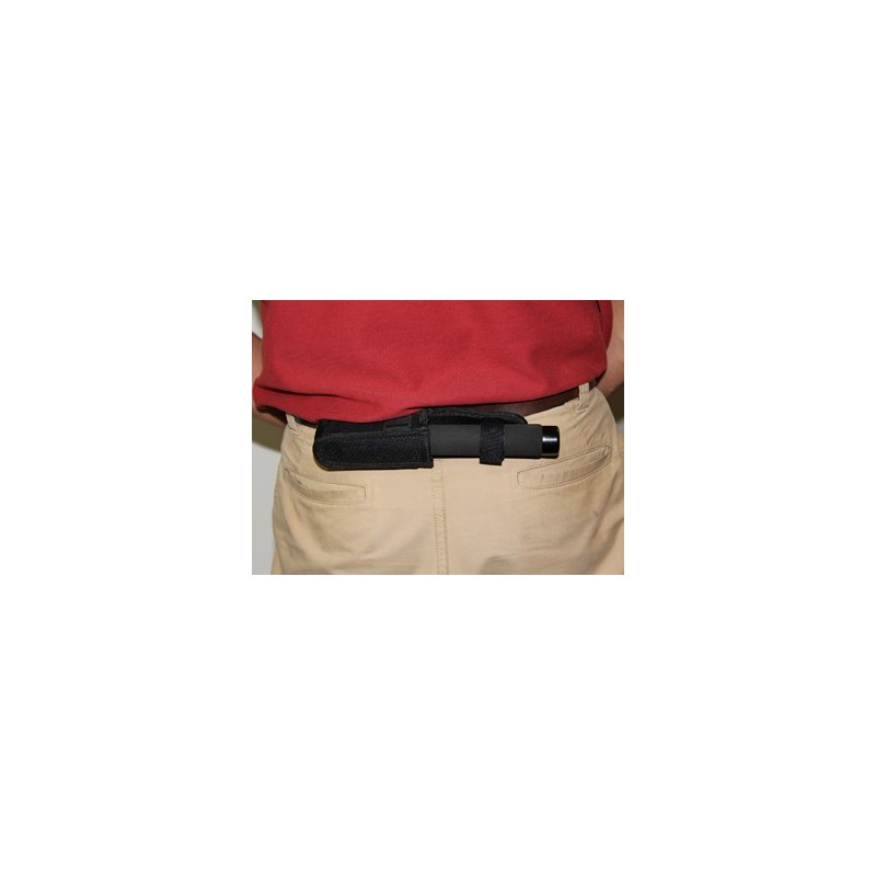 > Funda de nylon balístico con cierre en velcro y soporte en cinturón.