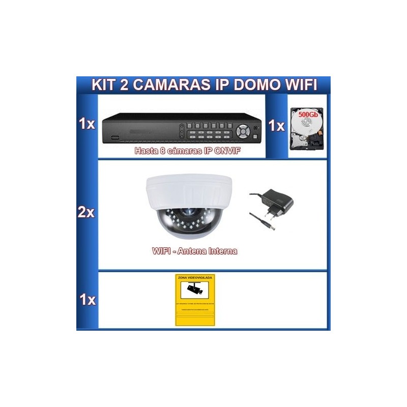 You are here: Productos Kit de Videovigilancia IP WIFI. 2 Domos WIFI 720p + NVR 500 Gb
