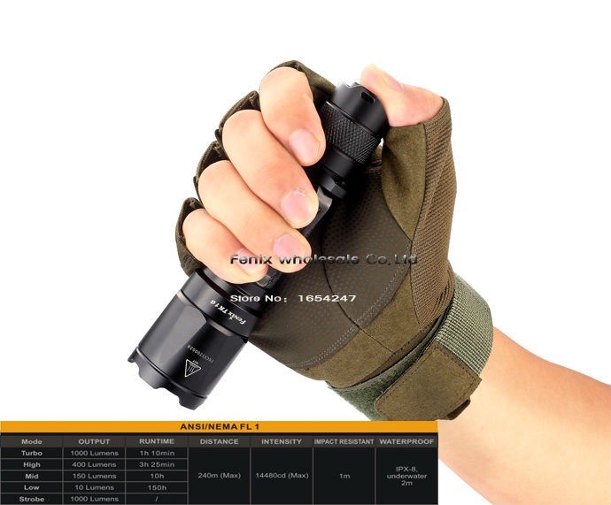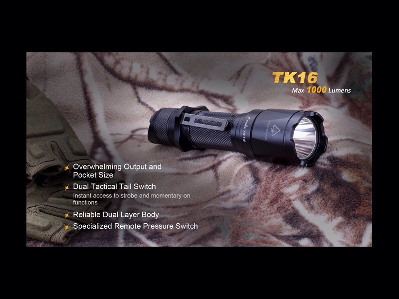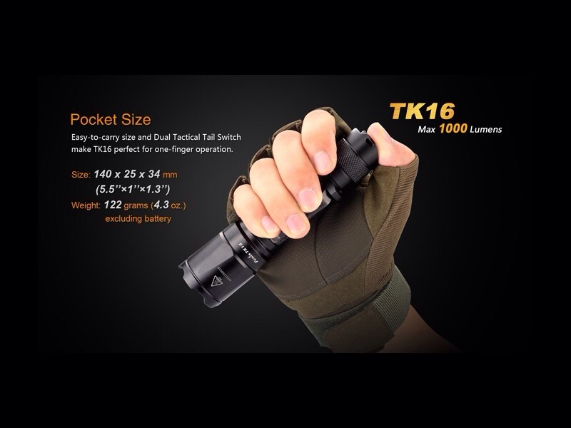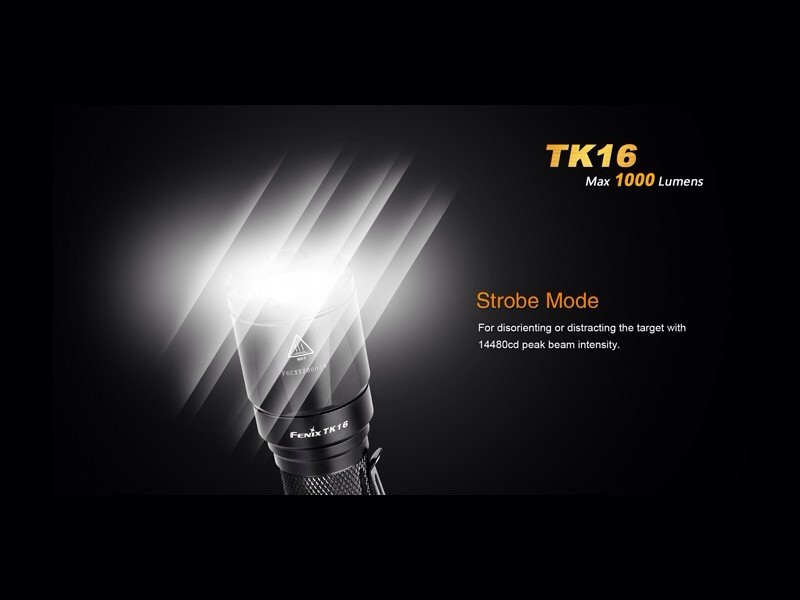 La linterna Fenix TK16 integra funcionalidad y rendimiento. Una linterna potente, fiable e indispensable en casos de emergencias y actuaciones tácticas. Esta linterna es la primera de la gama de Fénix en presentar el nuevo interruptor de cola táctico dual. La operación es mediante un solo dedo y el acceso a la función estroboscópica es instantáneo así como a la función momentánea. La Fénix TK16 ofrece cuatro modos de brillo, además de un modo estroboscópico. Puede lanzar 1.000 lúmenes de salida máxima y tiene un alcance de hasta 240 metros. Además incorpora un novedoso cuerpo de doble capa.