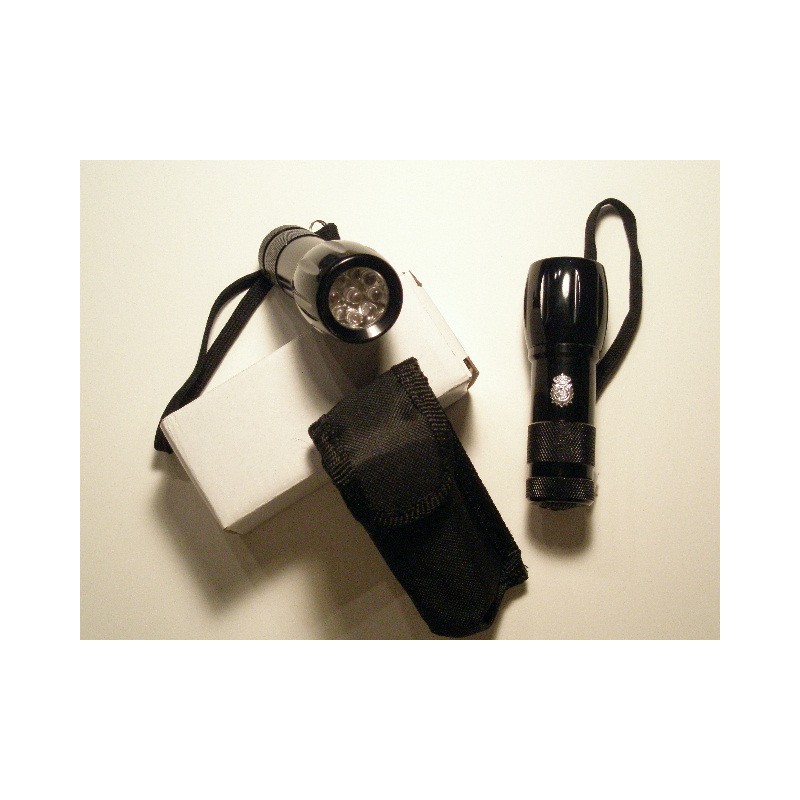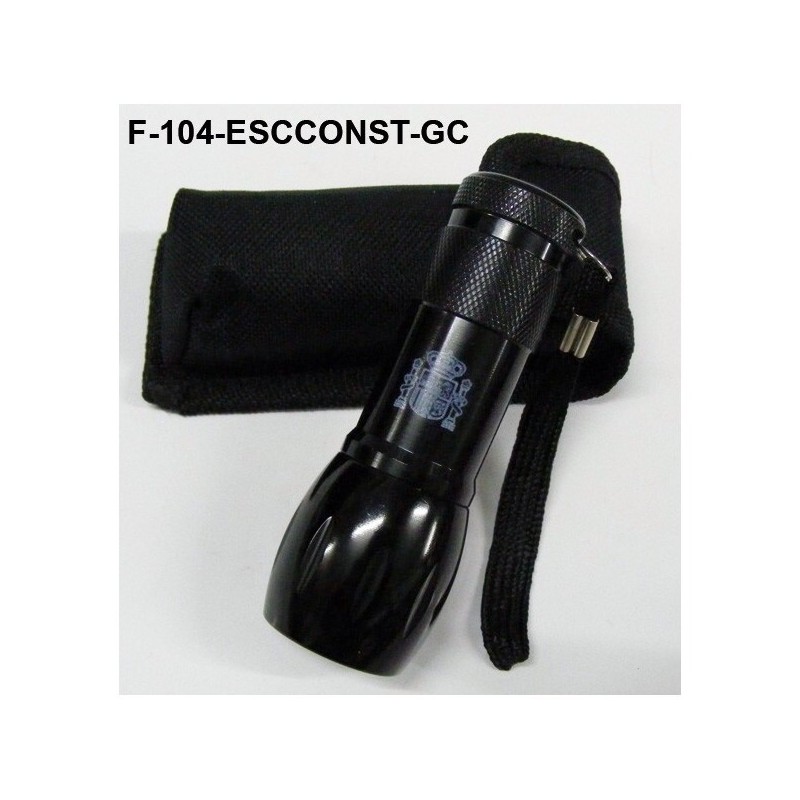 Linterna con 9 LEDS emblema Guardia Civil, Poilcia N,. Policía L, Grabado + funda nylon, Cuerpo de aluminio, Emblema Constitucional.