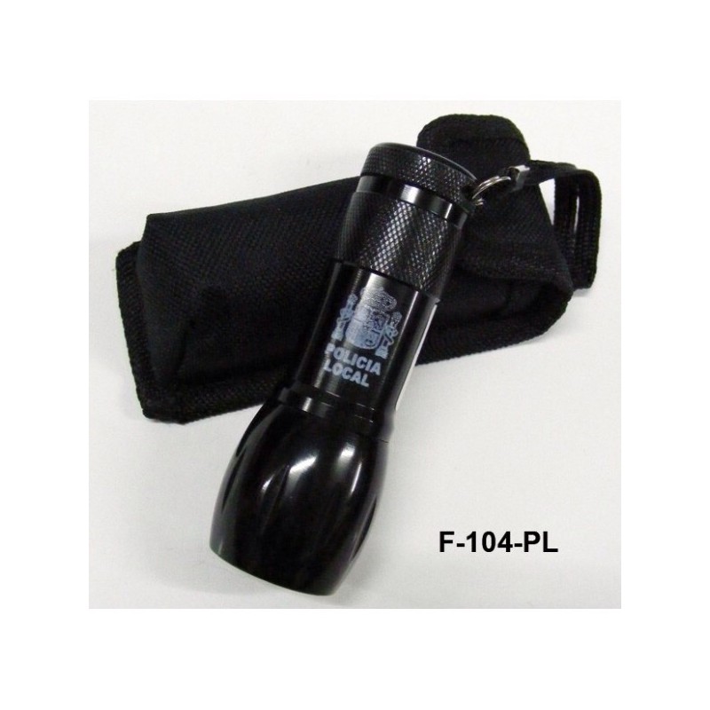 Linterna Guardia Civil, Poilcia N,. Policía L, Grabado + funda nylon, Cuerpo de aluminio, Emblema Constitucional.