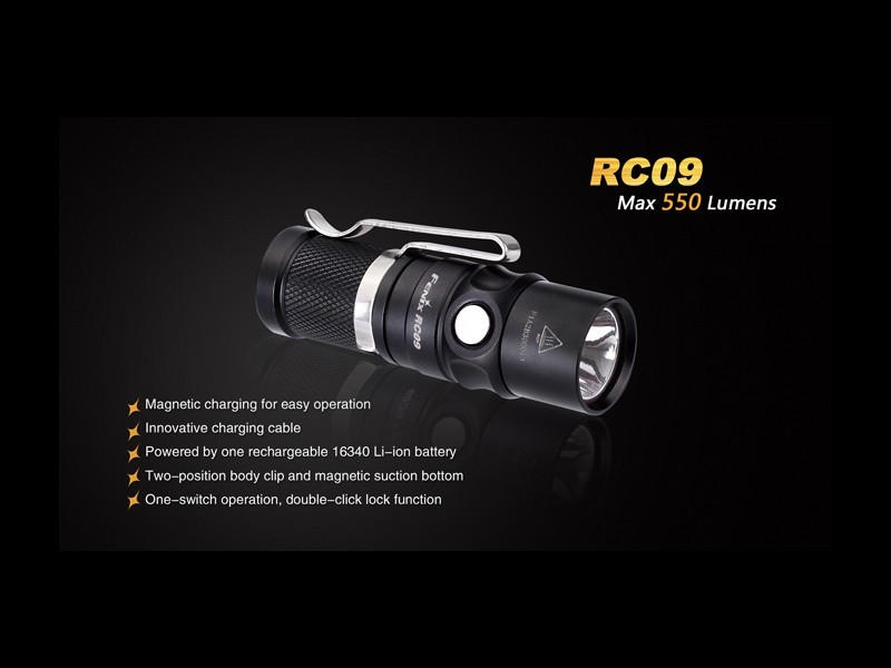 La linterna incluye: Linterna RC09, correa, funda, cable con base magnética (terminación USB y micro USB), 1 junta tórica, garantía e instrucciones.