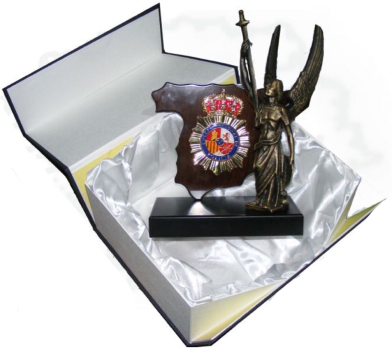 CompararMETOPA SILUETA ESPAÑA CON EMBLEMA CUERPO NACIONAL DE POLICÍA Y FIGURA ÁNGEL CUSTODIO