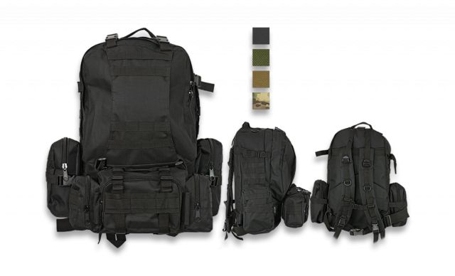 Compartimentos: Mochila principal (porta armas en la parte anterior) + 3 bolsillos.