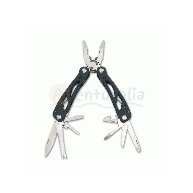 Dispone de los siguientes usos: Hoja, lima, abrelatas, corta alambre, abrebotellas, alicates, destornillador, descapsulador, destornillador philips,desenredador y escamador.