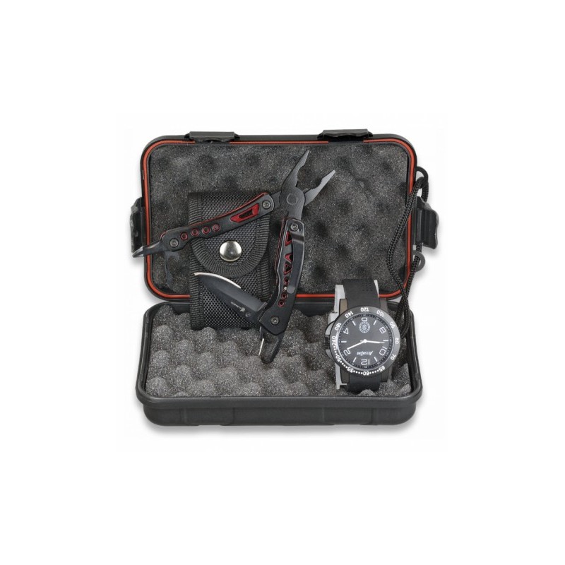 Marca: ALBAINOX Set que incluye: Reloj táctico negro 33789 Alicate multiusos 33428 Caja acolchada 34162