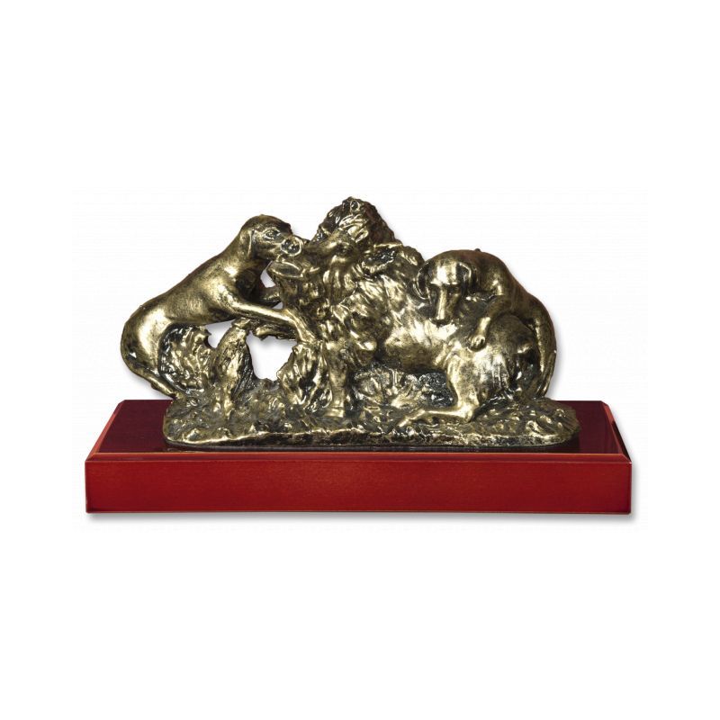 Trofeo resina JABALI+PERROS Con peana